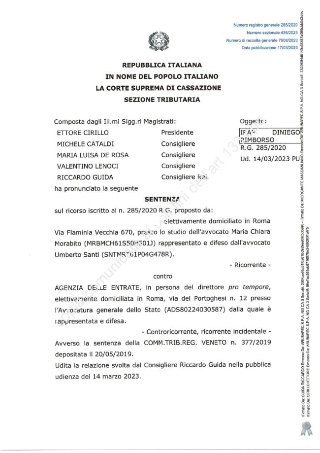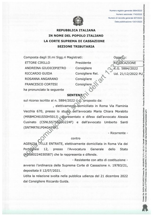 La Corte di Cassazione accoglie il ricorso in revocazione  La quinta sezione tributaria della Suprema Corte di Cassazione ha accolto con sentenza 21.12.2022, n. 957/’23, depositata il 13.01.2023, il ricorso in revocazione presentato dallo Studio Santi, sia per la fase rescindente sia per la fase rescissoria, e di conseguenza revocando la propria precedente ordinanza sfavorevole…